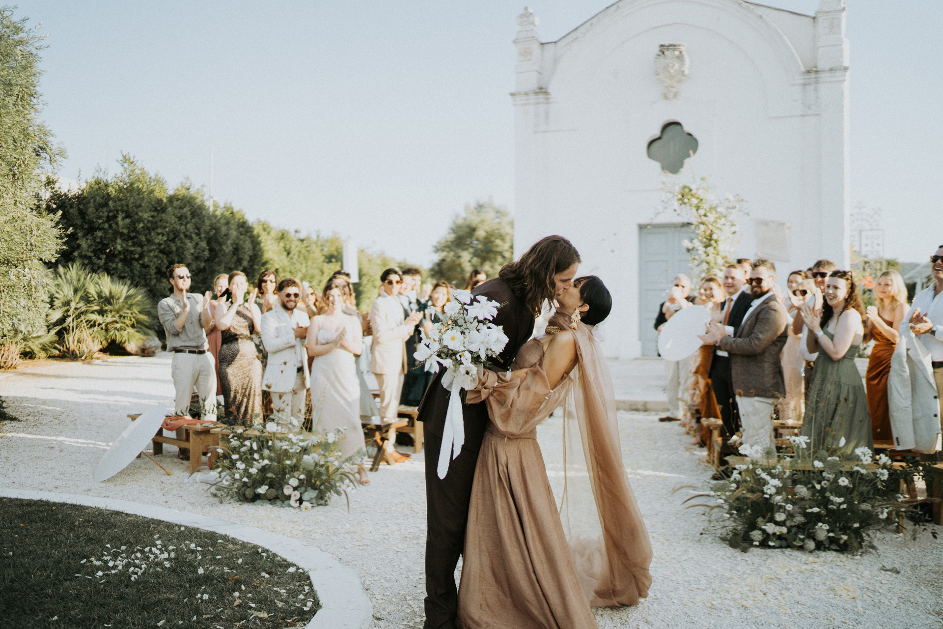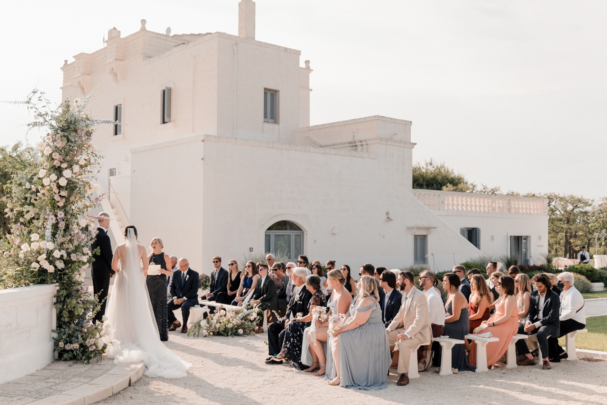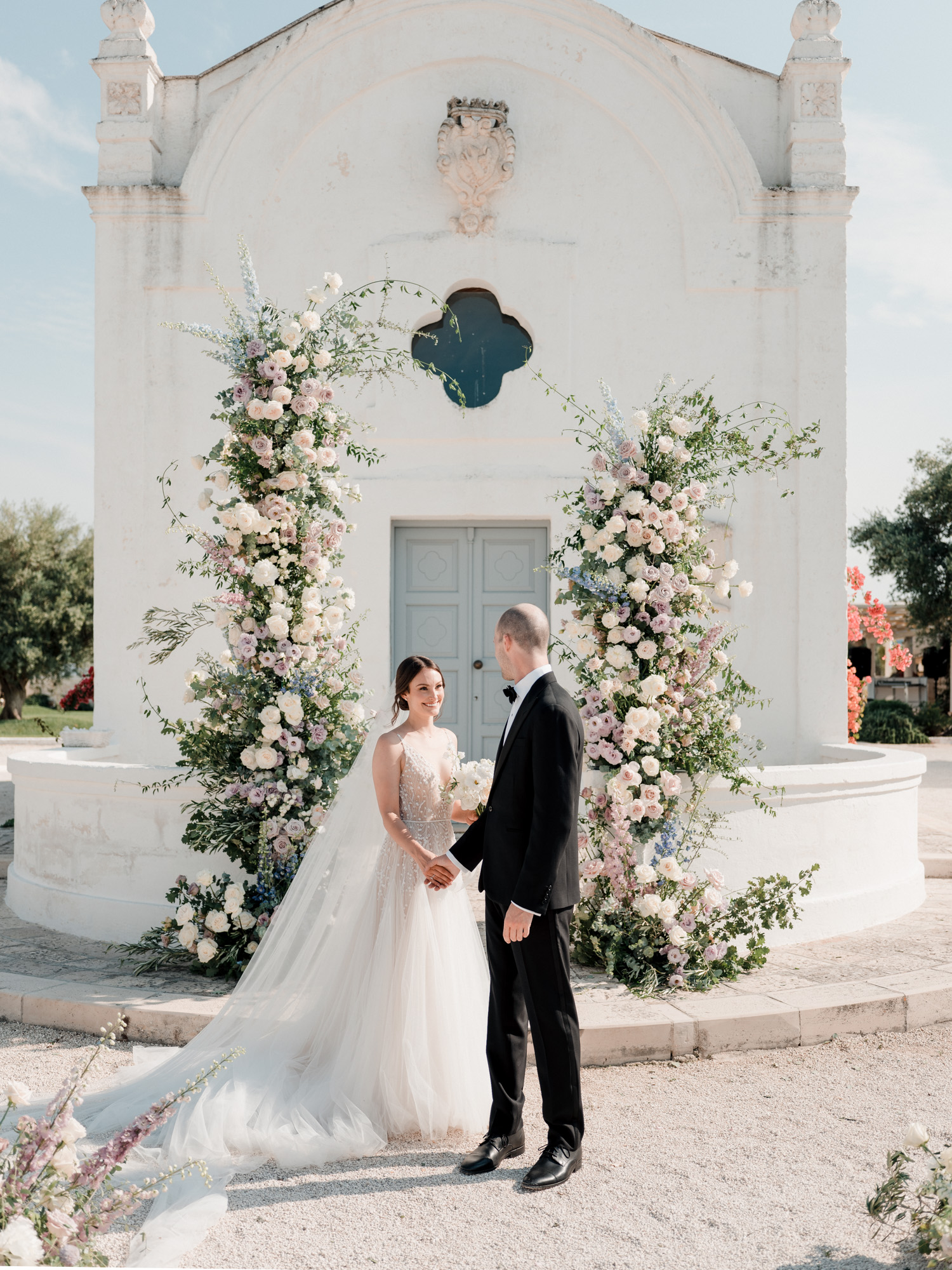 Each ceremony is fully tailored, with bespoke styling, floral design, and seamless planning support. Following the ceremony, celebrations continue with a personalized reception enhanced by exceptional Apulian catering, creating a complete and unforgettable wedding experience in Puglia.